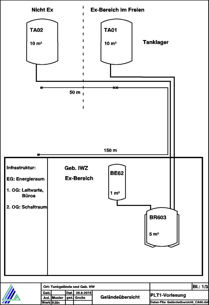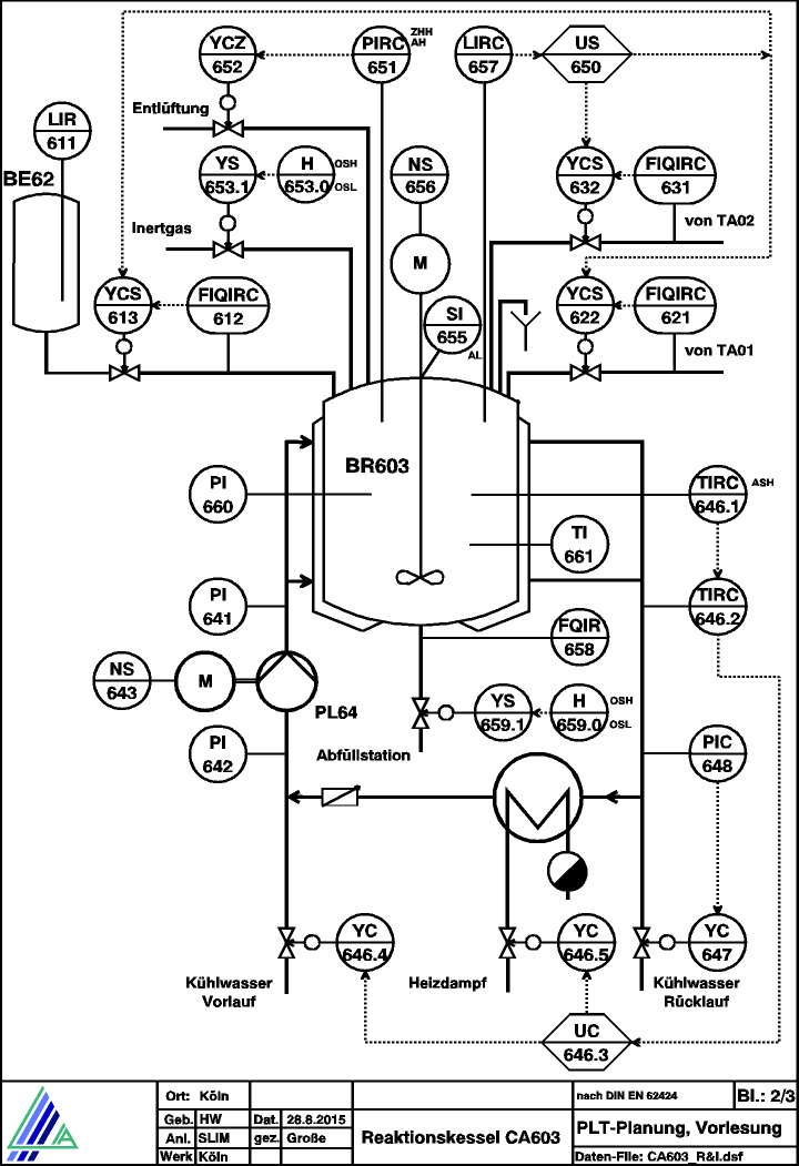 PLT Planung: Planspiel-Projekt Ingenieurbüro Begleitend zur Vorlesung Prozessleittechnik Planung wird eine Musteraufgabe der Automatisierung in Form eines "Planspiels" realisiert. Der Zeitplan der Vorlesung PLT Planung findet sich hier. Ein potentieller Auftraggeber beschreibt die Aufgabenstellung "Automatisierung einer Produktionsanlage". In der Industrie fällt diese Beschreibung erfahrungsgemäß knapp aus. Die Studierenden der Vorlesung organisieren sich in fiktiven Ingenieurbüros und versuchen den Auftraggeber auf eine klar umrissene Aufgabenstellung festzulegen. Dabei gilt es als Team zu agieren, formale Besprechungen zu führen, sich gegenseitig zu informieren und letztlich alle industriell notwendigen Planungspapiere zu fertigen. Am Ende steht ein Vertrag zwischen Auftraggeber und Auftragnehmer, also ein Angebot jedes Ingenieurbüros und hoffentlich eine Bestellung. Alle Ingenieure in der Industrie agieren so, selbst wenn sie nur intern die für ihre Aufgaben notwendigen Gelder zu begründen haben. Es liegt also nahe, diese Zusammenhänge im Rahmen der Vorlesung zu proben. Natürlich werden die wesentlichen technischen Inhalte im Rahmen der Vorlesung PLT Planung behandelt (Vorlesungsinhalte), dennoch wird es einige Themen geben, die jeder einzelne Studierende selbst zusammenfasst und im Rahmen eines kleinen Vortrags vorstellt. Darüber wird arbeitsteilig das notwendige Wissen erarbeitet. Der Aufwand wird in etwa dem zeitlichen Aufwand für Übung und Praktikum entsprechen. Vorausgesetzt ist aber, dass die Teams verlässlich zusammenarbeiten. Aber gerade die für eine Sache notwendigen Arbeitsstunden sollten von den Ingenieurbüros verwaltet werden, damit spätere Kostenschätzungen präziser werden. Die Betreuung findet durch Prof. Dr. Große unterstützt von den Assistenten statt. Die Aufgabe: Der potenzielle Auftraggeber, Betreibers einer Anlage HW - CA60 mit Tanklager zur Produktion eines Kunststoffes „SLIM“, stellt seine Anforderungen wie folgt vor: "Aus 3 Grundstoffen, davon ist einer lösungsmittelhaltig (Stoff 01), wird durch Reaktion unter ständigem Rühren der Kunststoff „SLIM“ synthetisiert. Es erfolgt nach Abkühlung ein Transfer über eine Abfüllstation in Tankwagen. Verfahren: