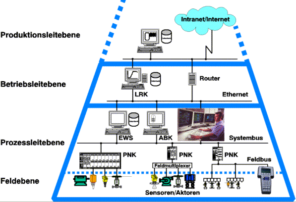 Überblick zur Prozessleittechnik Hier finden sich Details zum Ablauf und die Zeitpläne für die Module PLT-Planung und PLT-Systeme. Die Prozessleittechnik hat sich als „Rahmen“-Wissenschaft für alle zur Automatisierung und zum Anlagenbetrieb benötigten Techniken in der Prozessindustrie etabliert. Sie beinhaltet den Entwurf und die Planung aller zugehörenden Geräte und Systeme in Hardware und Software. Fasst man die „sichtbaren“ Teile dieser Technik zusammen, sind die folgenden Gerätegruppen zu nennen: - Die Sensor- und Aktortechnik des sog. Feldes zum Verstellen der Material- und Energieströme eines Produktionsprozesses, - die im Feld benötigte Vernetzung als Feldbus, - die Informationsverarbeitung der Automatisierung, namentlich die Steuerungs- und Regelungstechnik, - der Aufbau von dezentralen Rechnersystemen mit Bediengeräten für das Anlagenpersonal als sog. Prozessleitsysteme - und die Software-Strukturen für hierarchische Steuerungen, universelle Rezeptfahrweise und modellgestützte Regelungen - sowie die Schnittstellen als Software-Anbindungen zu Rechner-Netzen der Betriebs-, Produktions- und Unternehmensleitebene. Neben der Anlagenautomatisierung spielen Gesichtspunkte der Sicherheit für Mensch, Umwelt und Anlage, der Verfügbarkeit als wirtschaftliches Risiko, der Infrastruktur und der Planung eines prozessleittechnischen Projekts im praktischen Alltag eine gewichtige Rolle. Eine Betrachtungsweise, welche lediglich die Geräte und Systeme im Mittelpunkt sieht, die sinnvollerweise am Markt verfügbar sind, kann nur zu suboptimalen Lösungen bei der Konzeption von Produktionsanlagen kommen. Als erfolgreich hat sich eine ganzheitliche Betrachtungsweise unter zur Hilfenahme des Wissens aller am Anlagenbau und am Anlagenbetrieb beteiligten Gewerke erwiesen. Nur diese Betrachtungsweise sichert für das produzierende Unternehmen im Ganzen kostengünstige, effizient arbeitende und gut betreubare Anlagen. Die Funktionen der Prozessleittechnik werden heutzutage fast ausschließlich durch Programme in vernetzten Rechnersystemen realisiert. Wenige Ausnahmen sind sicherheitsrelevante Verknüpfungen, die mit Hardware aufgebaut werden. Also muss der Entwurf komplexer Software und die Konfigurierung von Rechnernetzen im Zentrum der Ingenieure stehen, die die Automatisierung von Anlagen planen und realisieren. Dies ist der eine Grund, warum die sog. Informationstechnik in die klassisch Hardware-geprägten Gebiete der Automatisierungstechnik vorgedrungen ist. Ein weiterer, nicht minder wichtiger Grund für das Vordringen der Informationstechnik, ist der Bedarf an Unternehmensautomation, d. h. der Einsatz von effizienzsteigernden Programmen zur Produktionsplanung- und –steuerung (PPS), von kaufmännischer Software zur Disposition von Ressourcen und von Software zur Instandhaltungsplanung. Alle Programme im Unternehmen brauchen daher Schnittstellen untereinander, um im Sinne von Regelkreisen für die Größen Durchsatz, Qualität und Kosten pro produzierter Einheit, Informationen austauschen zu können. Die Prozessleittechnik ist damit untrennbar verknüpft mit den Informationssystemen der Betriebs-, Produktions- und Unternehmensleitebene. Aufbau der Skriptenreihe Diese Skriptenreihe versucht einen Überblick über das weite Feld der Prozessleittechnik mit der genutzten Informationstechnik zu verschaffen und das Wesen der Konzepte und der im Markt befindlichen Technik zu erläutern. Auf weiterführende Literatur wird jeweils Bezug genommen. Ein Skript enthält alle Vortragsfolien und einen ausführlichen beschreibenden Text, wie bei einem Buch. Die Bilder zeigen das aktuelle Buch zur Prozessleittechnik mit 450 Seiten, doppelseitig mit jeweils 2 Folien oder 2 Textseiten pro DIN A4-Seite.