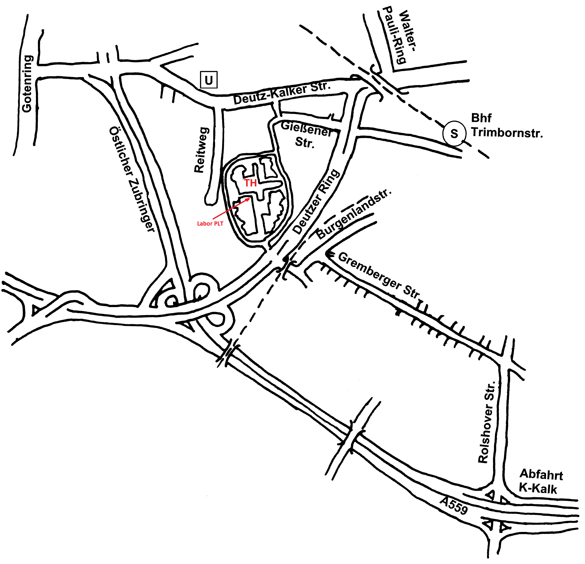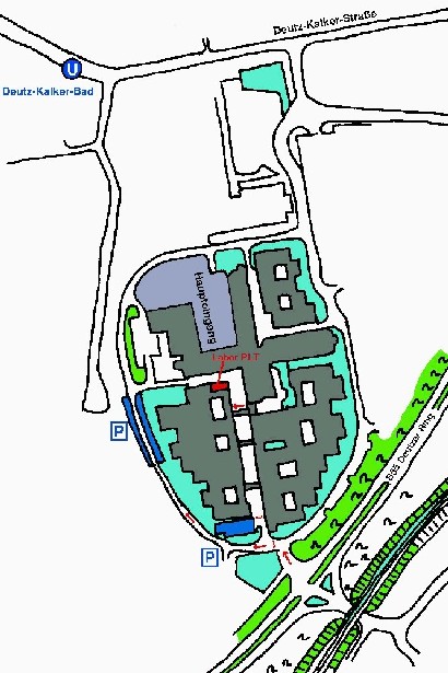 Verkehrsmitteln: Bei einem Navigationssystem im Auto: "50679 Köln, Deutzer Ring 5" eingeben. Der Lageplan des Labors im Gebäudekomplex ist hier zu sehen: